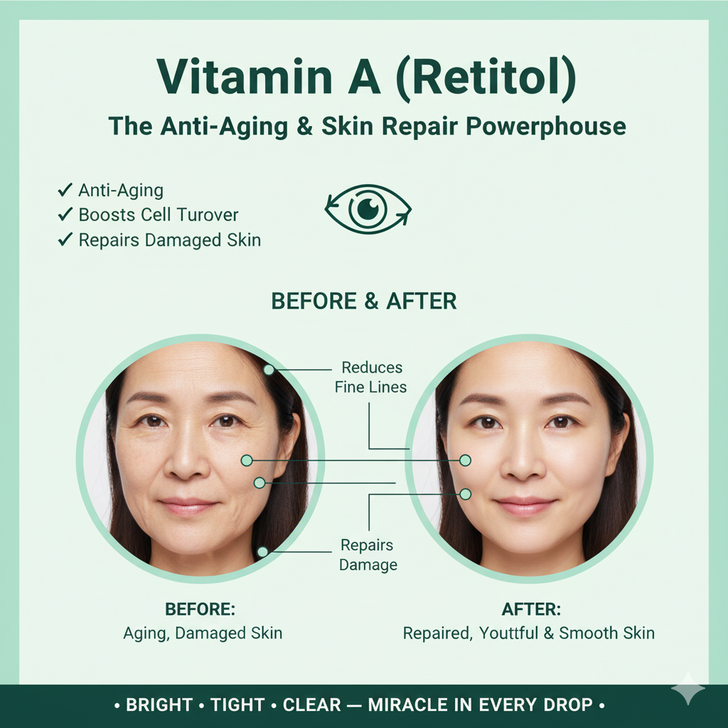 Vitamin A (Retinol) – Repairs & smooths skin texture