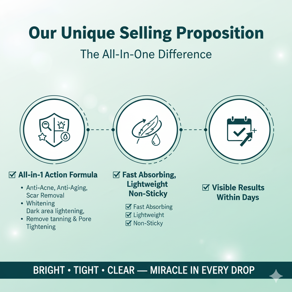 All-in-One Action Serum – Anti-Acne, Anti-Aging, Scar Removal, Whitening, Dark Area Lightening, Tan Removal & Pore Tightening